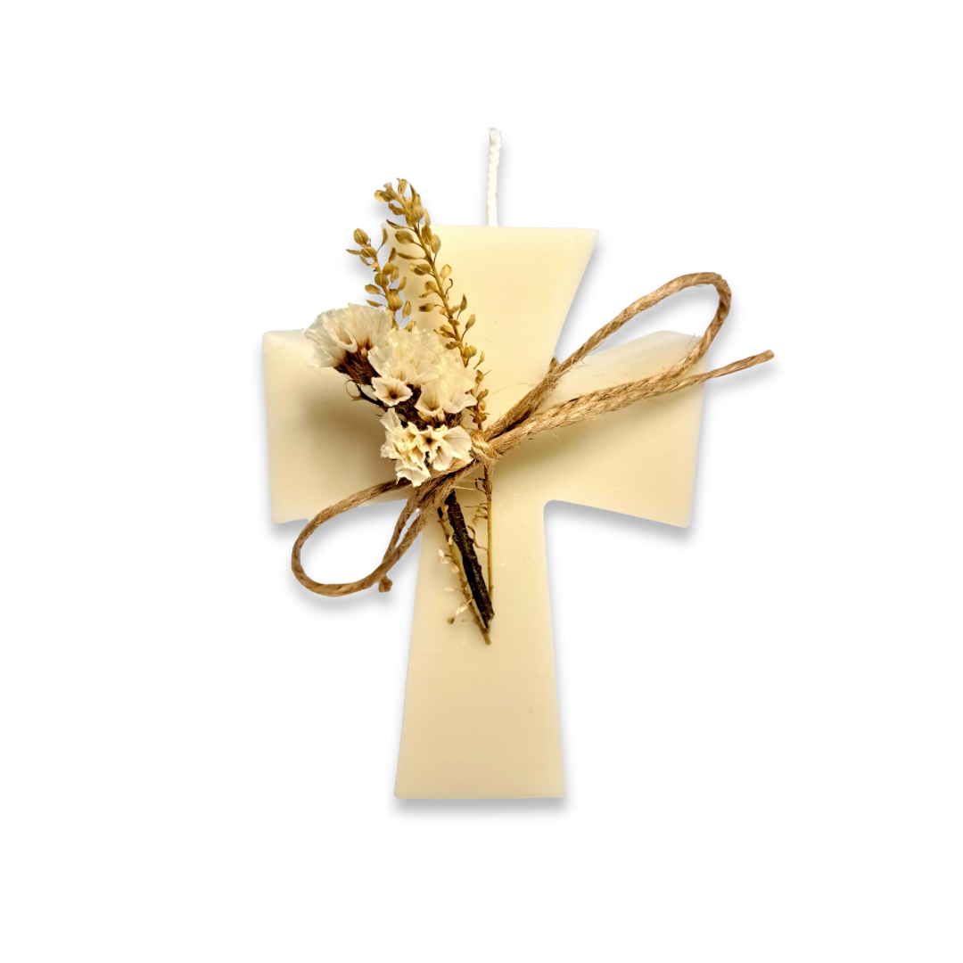 Una pieza delicada y simbólica, creada para acompañar momentos únicos y celebraciones especiales. Elaborada en cera de soja 100% natural, combina pureza y significado en un diseño que transmite calma y espiritualidad.